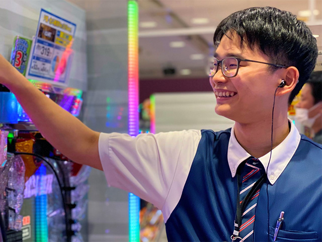 私がお客様のことを思って行動したことが良く働き、「○〇してくれてありがとう!」などの感謝の言葉をいただいたり、ご遊技で楽しんでいただけてる様子を見たり、笑顔を向けていただける瞬間が私が仕事をしている中で嬉しいと感じる瞬間です!